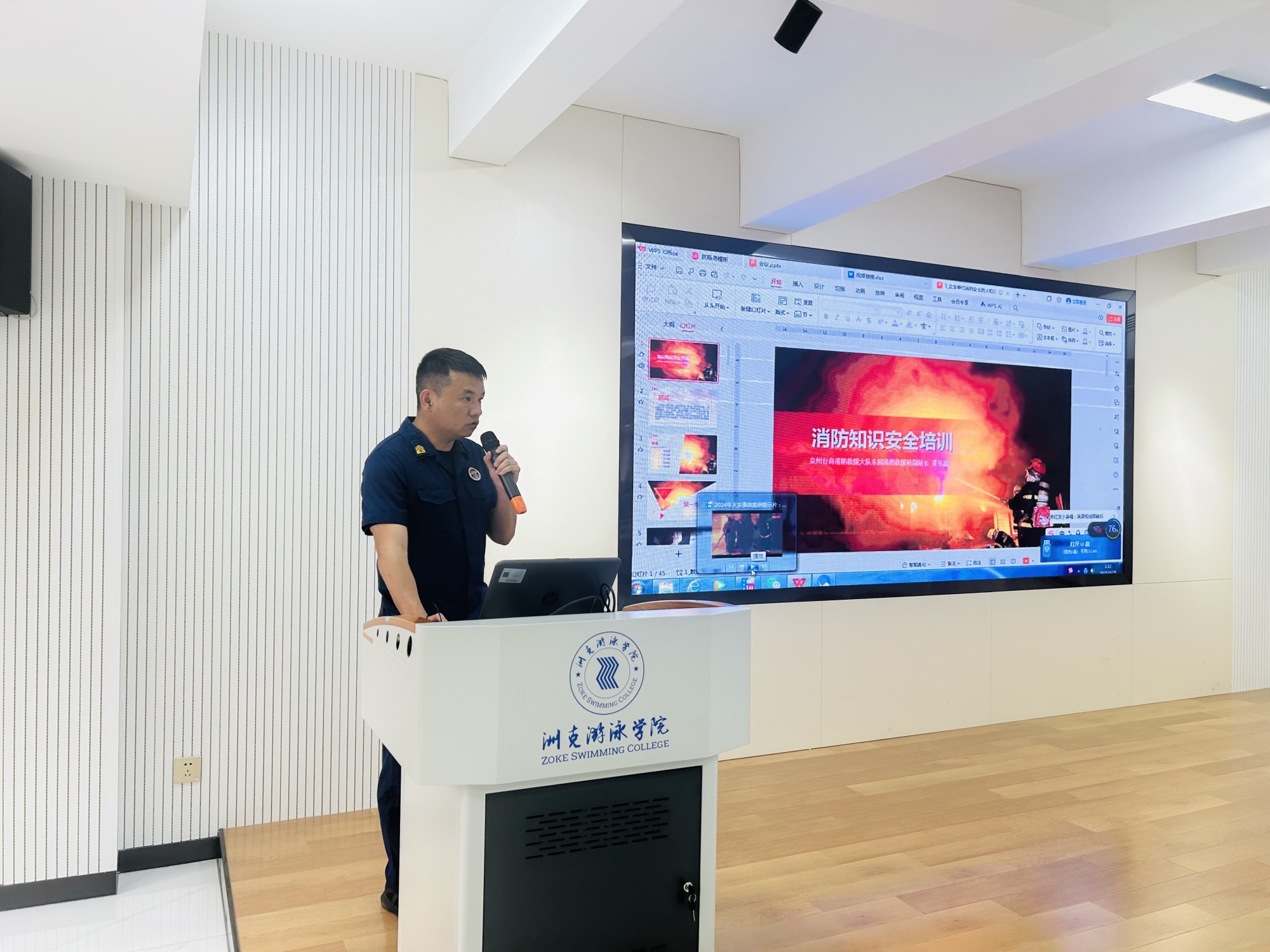 活动伊始,大家齐聚一堂,集中观看消防安全警示教育片。接着,由泉州台商投资区消防救援大队东园消防救援站副站长黄礼鑫作消防安全知识培训。通过专题培训与交流研讨,帮助大家进一步了解掌握消防安全常识,提高安全防范意识。