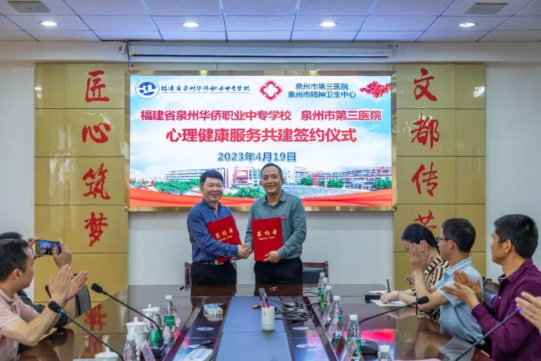 2023年4月19日,与福建省泉州华侨职业中专学校举行心理健康服务共建签约仪式。