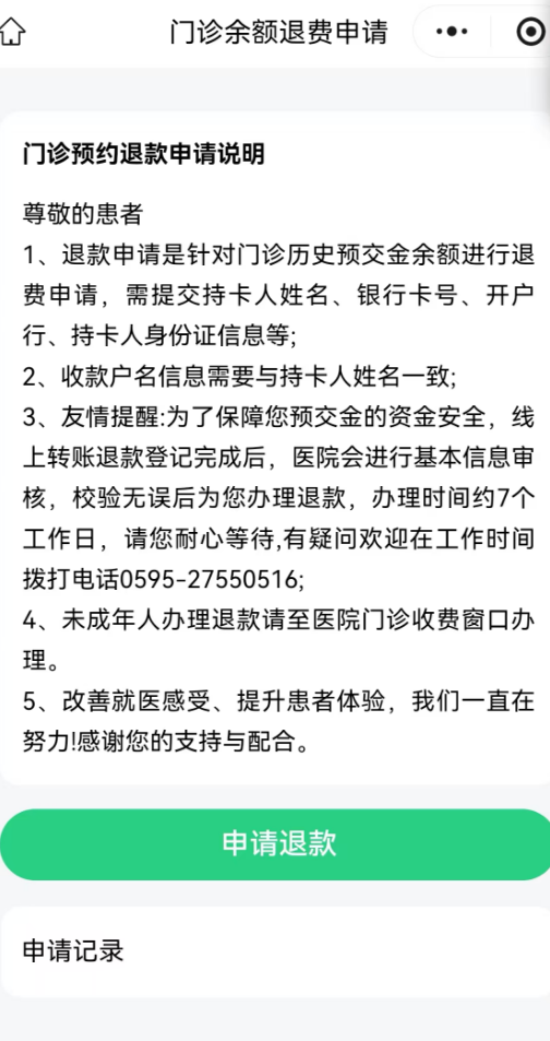 1、适用对象:所有就诊卡有余额的患者(含线上退费失败)。